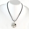 This tree of life pendant necklace fascinates with its ornate, silver-toned charm and eye-catching design. The pendant dangles from a 16-17.5 inch suede black necklace. This necklace stands out on its own, but can also be easily layered with the other necklaces from your collection.